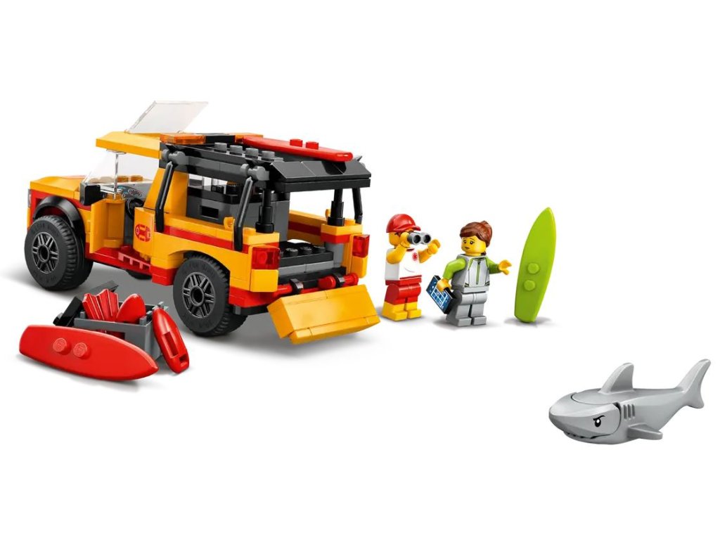 LEGO® City (60453) Záchranné auto pro plavčíka se děti od 6 let vydají na záchranné dobrodružství. Tento parádní model vozidla s otevíracími dveřmi, korbou a střešním oknem je plný pomůcek pro první pomoc na pláži, včetně 2 surfovacích prken, ploutví, dalekohledu a lékárničky. Součástí stavebnice jsou také minifigurky plavčíka a surfaře a figurka žraloka pro nápadité hraní a vyprávění příběhů. Součástí této hračky s motivem pláže je podrobný tištěný návod na stavění a 3D návod v aplikaci LEGO Builder, což je digitální průvodce stavěním s intuitivními nástroji přibližování a otáčení. Umožní dětem prohlížet si modely ze všech úhlů, zatímco na nich pracují. Stavebnice LEGO City Skvělá vozidla přináší realistické hračky plné úžasných funkcí pro neomezené hraní na zemi, ve vzduchu i na vodě. Děti můžou tuto stavebnici záchranného auta přidat k dalším stavebnicím z řady LEGO City (prodávají se samostatně) a užívat si ještě napínavější dobrodružství!