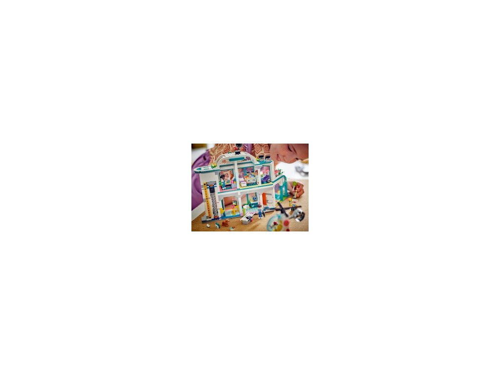 - Obsahuje herní sadu pro dětskou nemocnici – LEGO® Friends Heartlake Sada City Hospital nabízí hodiny kreativní hry pro děti od sedmi let, které si rády hrají na nemocnici a lékaře a odpočinková místnost pro zaměstnance LEGO® Friends postavy - obsahuje pět minifigurek panenek, včetně Autumn s dalším obličejem, který lze použít k vyjádření emocí po nasazení nové protetické paže, dvě dětské figurky, figurku robota a figurku psa. Spousta doplňků - sada obsahuje helikoptéru, rentgenový skener, invalidní vozík, obvazy, náplast, injekční stříkačku, postýlky, kojenecké lahvičky, balónky, čokolády a květiny, které inspirují příběhy přátelství Hračka pro děti, které milují hraní rolí – tato sada LEGO® Friends je kreativní nápad na dárek pro děti od sedmi let Intuitivní pokyny – aplikace LEGO® Builder vás povede a pomůže vašemu dítěti stavět pomocí nástrojů, které vám umožní přibližovat a otáčet 3D model, ukládat sady a sledovat pokrok Vymýšlejte příběhy o přátelství - ještě více zábavy s dalšími sadami LEGO® Friends (prodávají se samostatně) Rozměry - tato 1045dílná sada je 25 cm vysoká, 35 cm široká a 18 cm hluboká