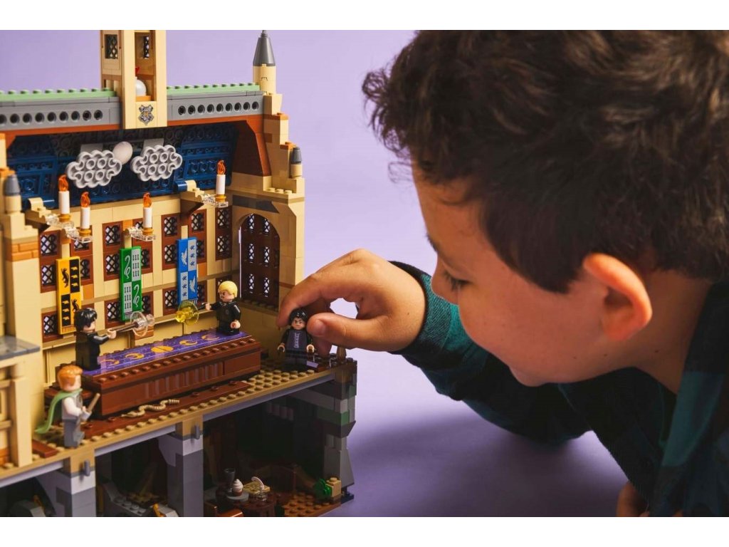 Připomeňte si kouzly nabitou scénu ze soubojnického klubu z filmu Harry Potter a Tajemná komnata se stavebnicí Bradavický hrad: Soubojnický klub pro děti od 8 let. Součástí je sestavitelná bojová plošina pro 2 minifigurky – zatlačením schůdků na kterékoli straně svrhnete protější minifigurku – a 1 ze 14 sběratelských bradavických portrétů, které si můžete vystavit nad sestavitelným krbem. Stavebnice obsahuje 4 oblíbené postavy: Minifigurky LEGO Harryho Pottera a Draca Malfoye, z nichž má každá hůlku a dílky představující kouzla, a minifigurky Zlatoslava Lockharta a Severuse Snapea pro kreativní hraní. Tato zábavná stavebnice s Harrym Potterem představuje skvělý způsob, jak dětem a novým fanouškům představit svět čar a kouzel z kostek LEGO. Tato dobrodružná stavebnice plná kouzel je součástí řady modulárních stavebnic LEGO Harry Potter (prodávají se samostatně), jejichž spojením vytvoříte ten největší Bradavický hrad z kostek LEGO vůbec.