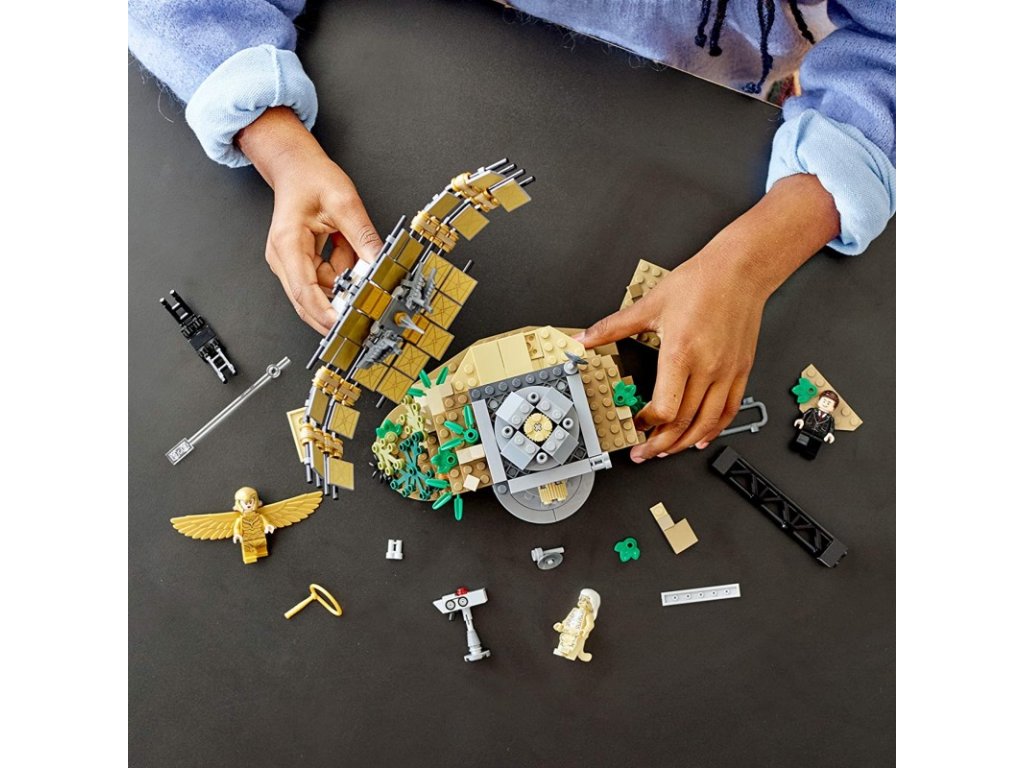 - Minifigurky okřídlené Wonder Woman™ a Cheetah do hry přinesou spoustu akce, zatímco minifigurka Maxe v řídicím centru dodá prvky napětí. Dynamickou hru zajistí také vysílač, který se otáčí o 360 stupňů a hýbe se nahoru a dolů.