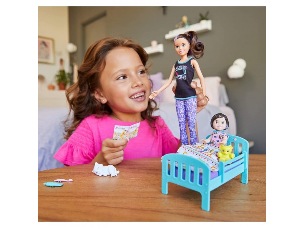 - Panenka batolete je připravena vklouznout do své postele v pyžamu s hvězdným a duhovým potiskem, který září ve tmě! Chůva se postará o batole a připraví ho na dobrou noc.