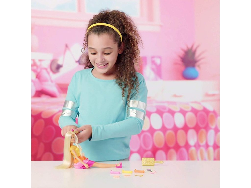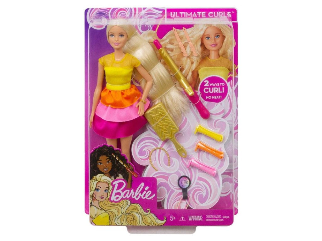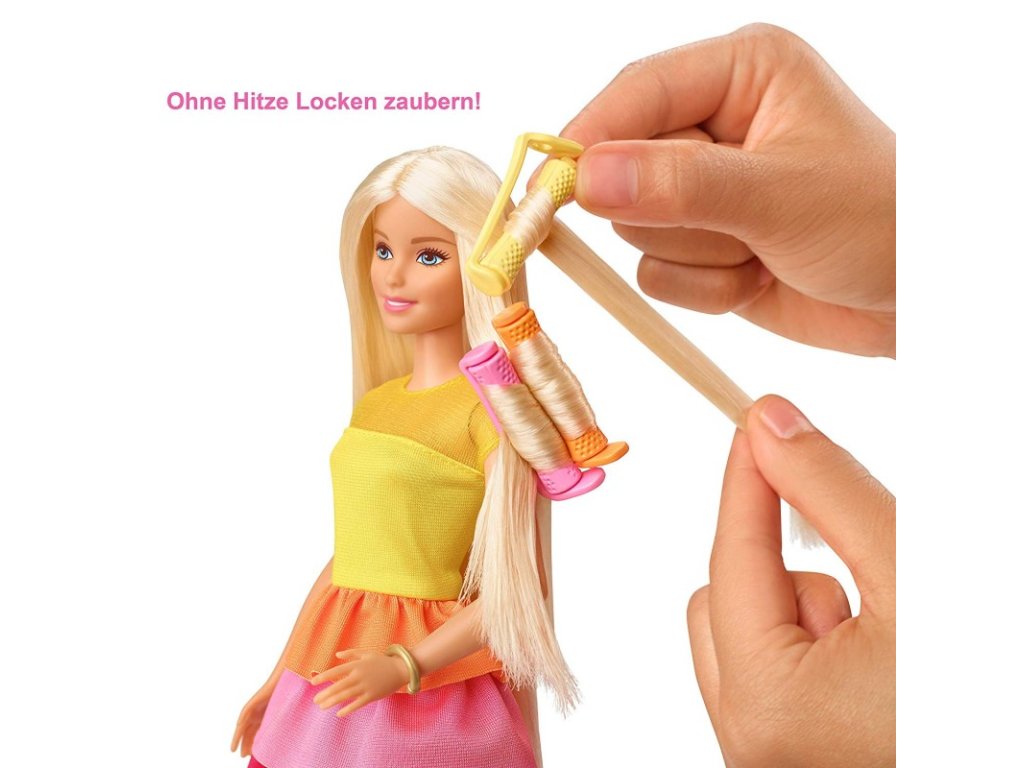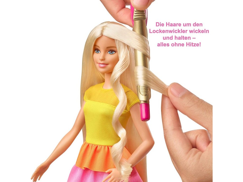 Barbie - a její souprava věcí na úpravu vlasů. Nechybí kulma, kartáč, natáčky, sponky. Natoč panenkce vlasy na kulmu a nech alespoň 20 vteřin a výsledkem ti budou krásné pravidelné lokny. Natoč panence vlasy na natáčky, ponech je tak alespoň 20 vteřin a vytvoříš tak bohaté vlny. Chceš pokračovat ? Znovu vlasy natočit. Pročeš panenky vlasy kartáčem, narovnej je tak, a můžeš začít znovu ...