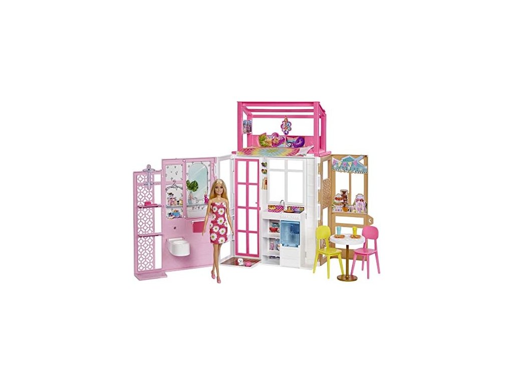 Tento plně vybavený Barbie® Skládací dům inspiruje k nekonečnému hraní díky dvěma patrům a čtyřem hracím místnostem včetně podkrovní postele, koupelny, kuchyně a jídelny. Děti se mohou rovnou nastěhovat a přehrát si jakýkoli příběh díky zábavnému vybavení včetně židlí, jídelního stolu a dalšího vybavení. Nechybí ani rozkošné štěňátko, které má vlastní bazén ve tvaru tlapky ve velikosti domácího mazlíčka! Stylové detaily a moderní povrchové úpravy otevírají dveře všem druhům vyprávění příběhů. Celý set se dá složit, aby bylo jeho přenášení snadné. Panenka Barbie je připravena na celodenní hraní v šatech s potiskem sedmikrásky a stylových růžových botičkách. Rozložený domek má na šířku 70cm, na výšku 50cm.