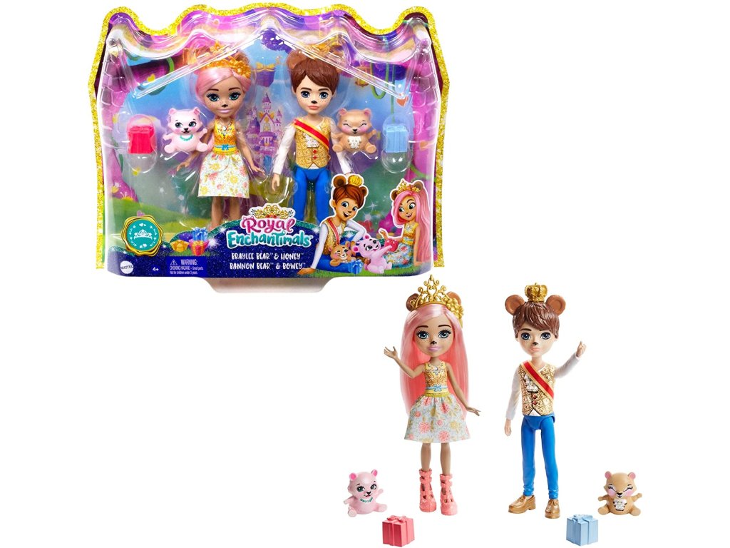 Fanoušci kouzelných příběhů budou potěšeni těmito rozkošnými panenkami Braylee Bear a Bannon Bear z kolekce Royal Enchantimals.