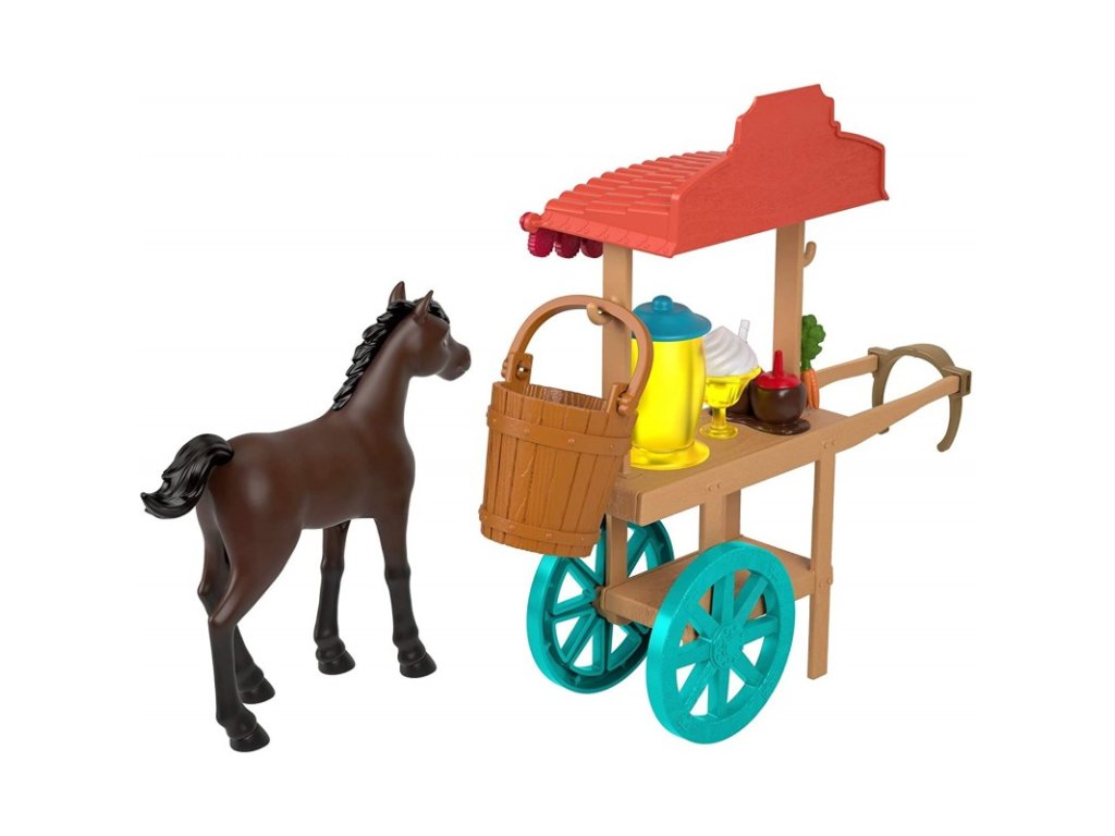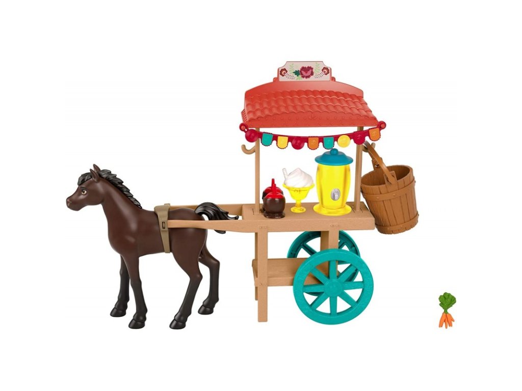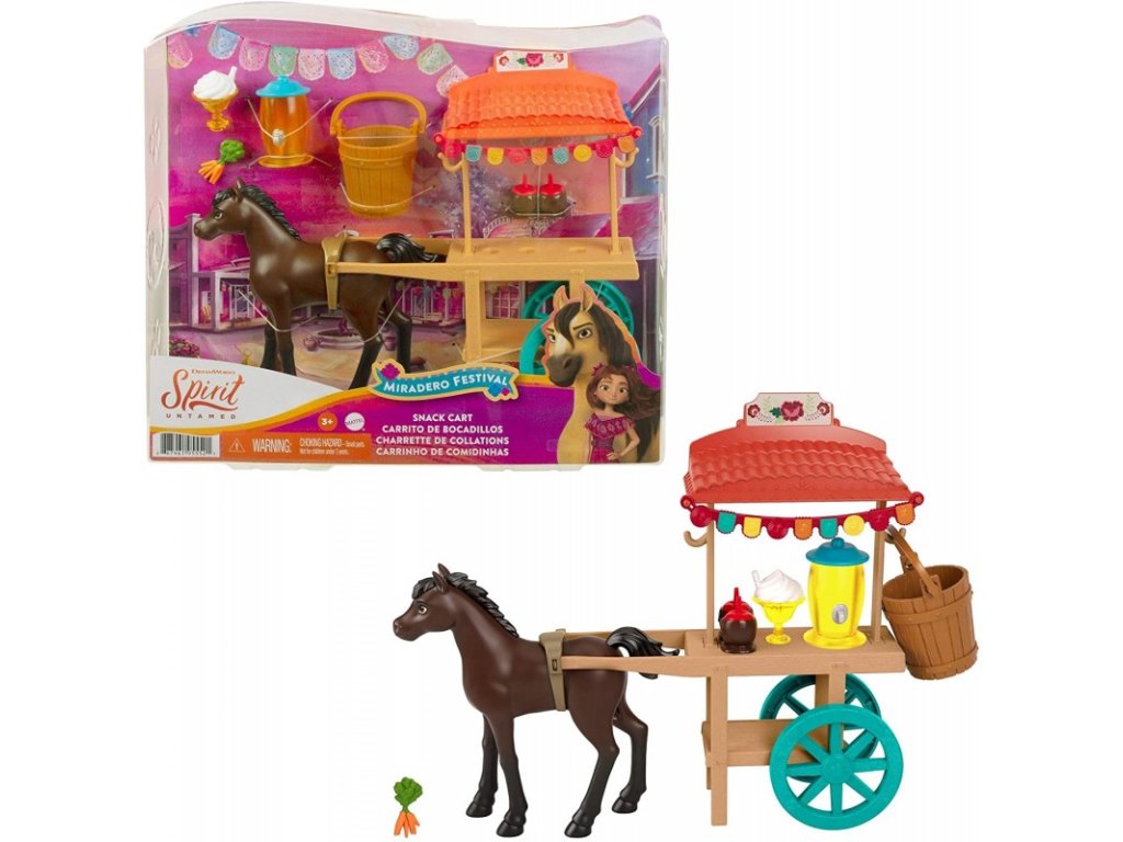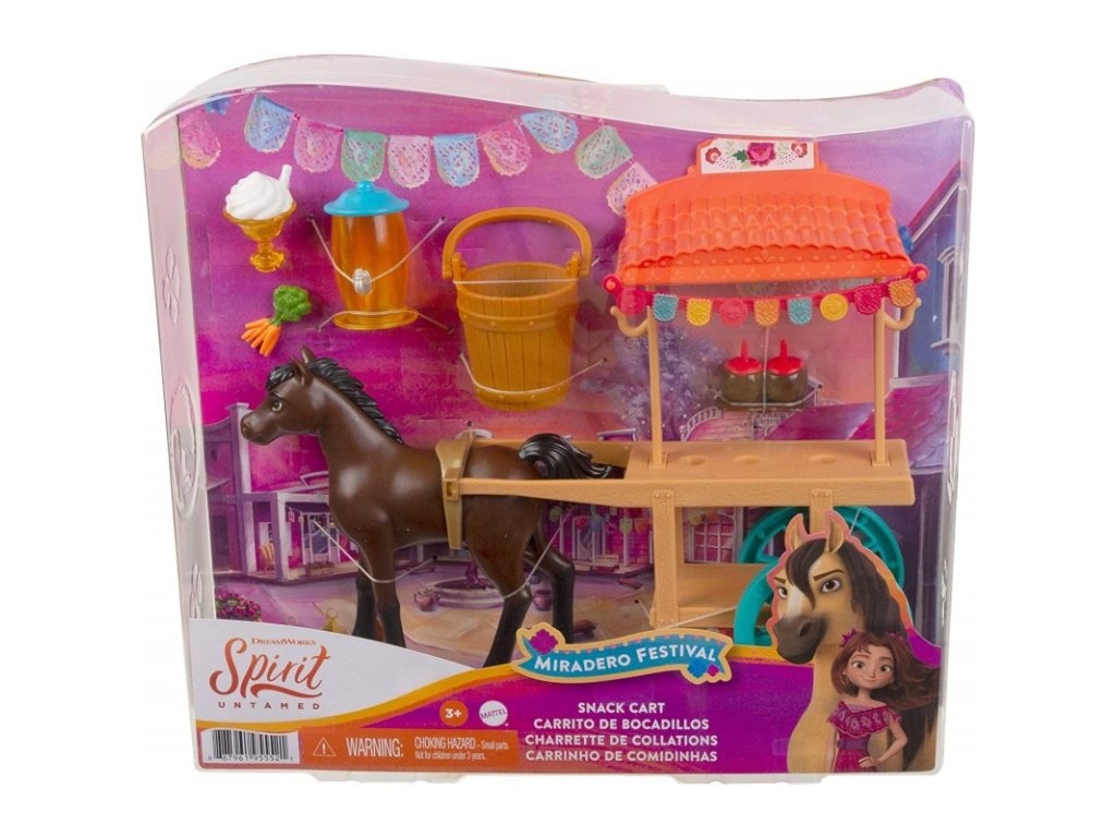 Buďte součástí nového přátelství, statečnosti a dobrodružství s animovaným filmem Spirit: Divoký hřebec od DreamWorks! K tomu vám napomůže panenka Lucky ve festivalovém oblečku se svým věrným koněm Spiritem, kteří bez sebe nedají ani ránu. Užijte si společně kouzelné chvilky.Stánek je dodáván s příslušenstvím pro výrobu kornoutů se zmrzlinou a s malým poníkem. Vyrobeno v originální licenci k filmu Spirit Untamed.