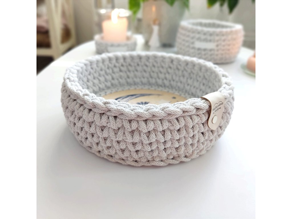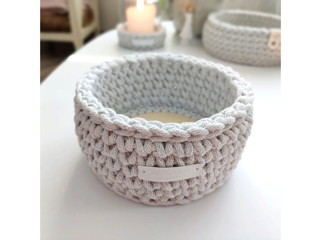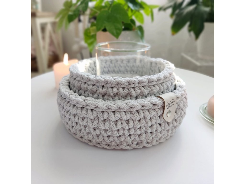 Ručně háčkované košíčky + obal na svíčku se sklem v barvě jemné šedé - barevný odstín se může mírně lišit dle zobrazení monitoru, na kterém inzerát zobrazujete. Košíčky jsou nejen originální dekorací Vašeho domova, ale také praktickým pomocníkem, jak mít vše potřebné na jednom místě. Košíčky jsou krásné do dětského pokoje, pro jejich neutrální barvu se hodí i jakko dárek do kouta tam, kde si nejste jisti, zda se narodí holčička či chlapeček.